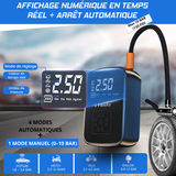 For car tires, the recommended pressures are usually found on the driver's door frame or on the fuel filler flap. In addition, our pump has 4 preset inflation modes: car tires, motorcycles, bicycles and balls. Each mode has a recommended standard pressure. The pump stops automatically once this pressure is reached. You can also choose a manual pressure up to a maximum of 10 bars.